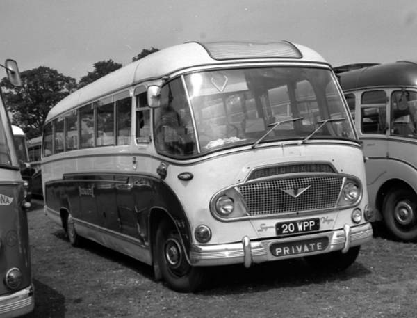 Buckmaster, Leighton Buzzard 20WPP, seen at Ascot Race Course, was a Bedford SB5 with a Duple Super Vega C41F body dating from April 1962.