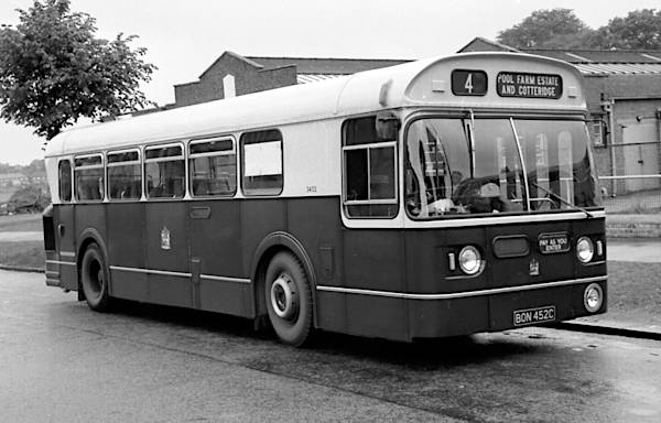 Birmingham 3452, BON452C, with a Marshall B37F body was one of twenty-four Daimler CRG6s in the fleet which were bodied as single deckers.