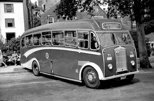 Four Albion FT39AN Victors were new to Guernsey Motors in January 1956 and 71, 2027, like the others, had a Heaver B35F body. It was transferred to Guernsey Railway Company in October 1973.