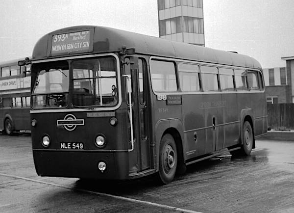 London Transport Country Area RF549, NLE549, an A.E.C. 9821LT Regal IV with a Metro Cammell B41F body, new in 1953, is seen operating on the 393A service to Welwyn Garden City.