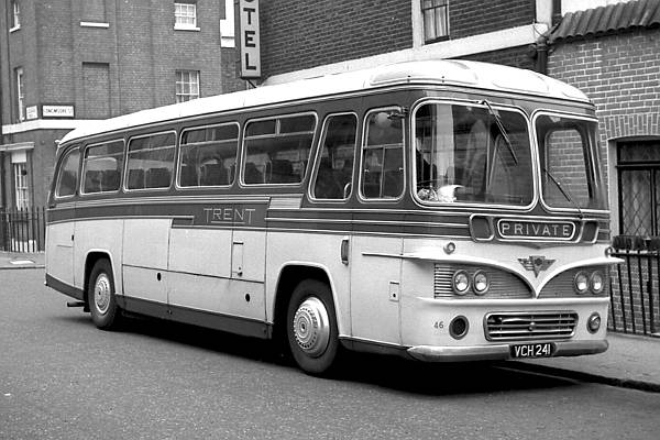 Trent 46, VCH241, was an A.E.C. 2MU3RA Reliance with a Burlingham Seagull 70 C41F body new in May 1961 and was seen in Guildhouse Street, Victoria.
