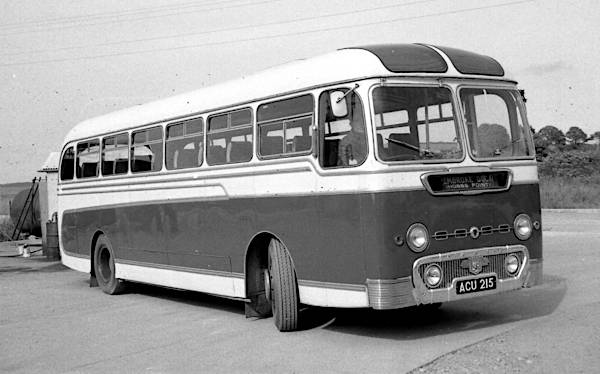 Acquired from Hall Bros., South Shields in 1961, ACU215 was a Leyland PSUC1/2 Tiger Cub with a Duple Midland Donington C41F body new in June 1958. It ran in Hall's livery for about a year and was Silcox number 56.