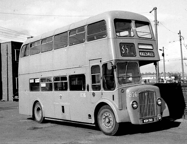With a Willowbrook H37/29RD body on a Daimler CVG6 chassis WDH901, new in 1956, was number 826 in Walsall's fleet and was the first of fifteen such vehicles.