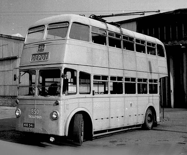 New as Cleethorpes 63 in 1951, HBE541 became Walsall 850 when acquired in 1960 from Grimsby-Cleethorpes 163 to whom it had passed in January 1957. It was a Crossley TDD42/3 with a Roe H29/25R body.