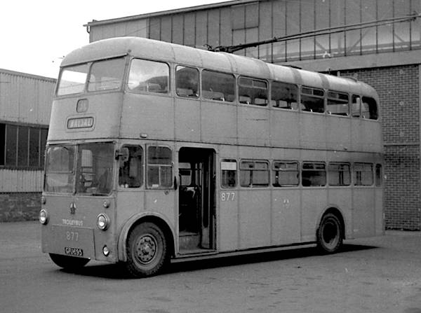 It was lengthened and rebuilt to H37/30F by Walsall before entering service as number 877 in January 1962.