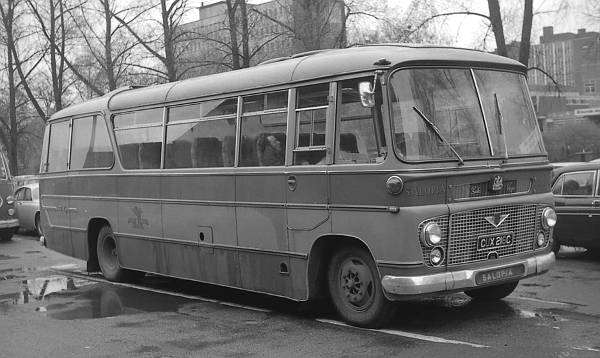 Salopia, Whitchurch CUX216C was new to them as number 216 in February 1965 and was a Bedford SB5 with a Duple Bella Vega C41F body and was seen in Shrewsbury.