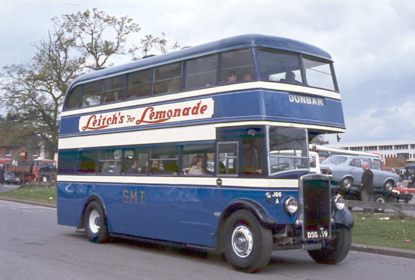 The preserved S.M.T., Edinburgh Leyland TD5 with a Leyland L27/26R body, J66, DSG169, is seen at one of the many rallies.