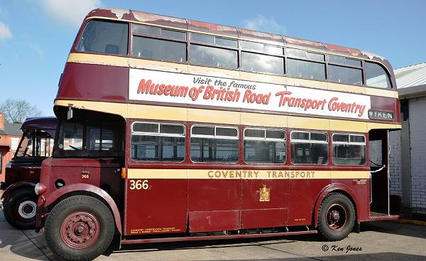 Preserved Coventry 366, EKV966 a Daimler CWA6 dating from 1944. It entered service with Coventry Corporation Transport in 1945 with a Duple utility body and gained a new Roe Pullman body in 1951. It was withdrawn in 1959 and has been in storage for a long time but renovation work is about to start.
