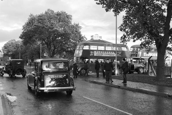 Trying to recreate a busy street scene from the past, as buses, people and cars all hurry about their business as the sun begins to set. The two buses are former LT RT1347, KLB596, and RTL1323, MLL685.