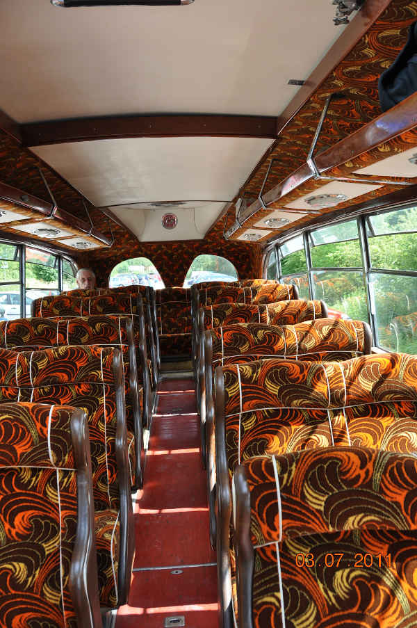 An interior view of JYC855, a Leyland PS1 with a Harrington Fin C33F body dating from 1947 and registered in March 1948 to Scarlet Pimpernel motors of Minehead in Somerset.