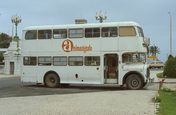 A second profile view of former CARRIS, Lisbon 411, GF-56-15, an AEC Regent V LD2LA with UTIC body new in 1960 and withdrawn in 1984. Seen in Estoril in 1987 being used for promotional work.