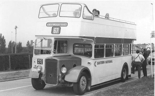 Eastern National open top KSWs were hired to Southend Transport for a number of summer seasons. Here on SD2379, WNO475, the ST crew confer and cause a minor traffic jam outside Southchurch Park at a stop only served by the summer open top service 67.