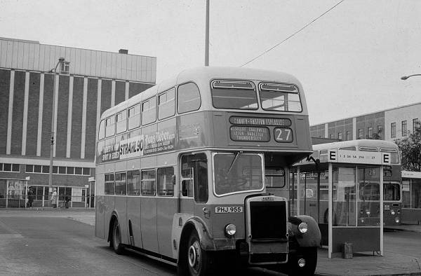 Photo from the Peter Cackett collection, photographer believed to be Frank Brereton, taken Central Bus Station, York Road, Southend