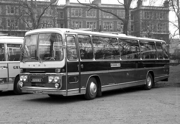 Seen in Battersea Park, London was PNO684K, a Ford R226 with a Plaxton Panorama Elite II C53F body, numbered 32 in the fleet of Osborne, Tollesbury.