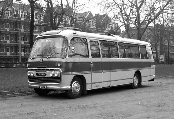 Operated by Thomas, North Muskham this Bedford SB5, GAL632J, had a Plaxton Panorama C41F body new in 1971 and was seen at Battersea Park, London.