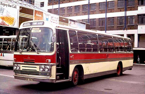 Silcox, Pembroke Dock 131, RDE567M, was a Bristol LHL6L with a Plaxton Elite Express III C51F body fitted with the "Bristol Dome" destination box. Seen at Victoria Coach Station presumably on hire to Associated Motorways.