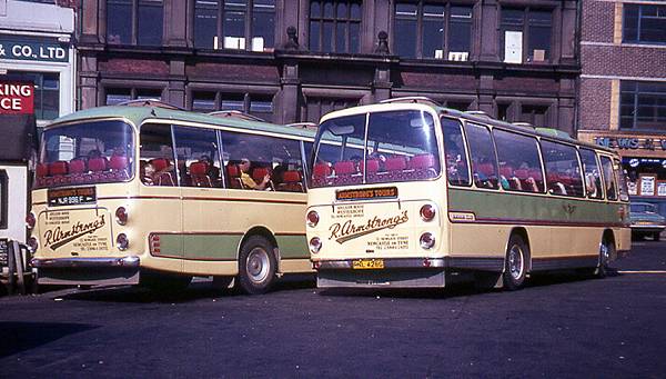 This rear view of NJR996F and RNL428G, taken at Marlborough Crescent, Newcastle, shows the different treatment of the rear end of the 1967/8 Panorama I and Panorama II compared to the rear end of the 1969-1975 Panorama Elite/Elite II/Elite III.
