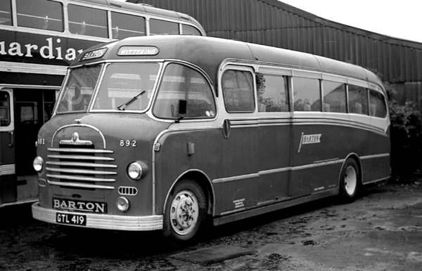 Barton, Chilwell 892, GTL419, was acquired with the business of McKechnie and Cole (Cream Bus Service), Stamford in February 1961. It was a Bedford SB with a Yeates C35F body which had been new in May 1955.