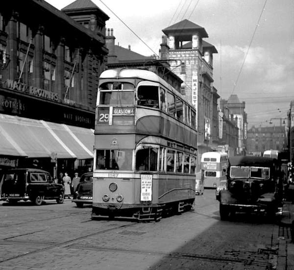 Glasgow 1247, new in June 1939 and withdrawn in July 1962 is seen near the Hope Street/Bath Street junction. It had EMB Lightweight bogies and a Glasgow built body seating 38/26.
