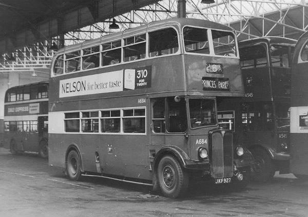 Liverpool A684, JKF927, an AEC Regent III, built 1950, Weymann H56R body, frames by LCPT Pearsons, Blakes, Davidsons, and Aero and Engineering.