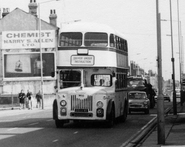 Sheffield M10, originally 913, 3913WE, a Leyland Titan PD3/1 built in 1959 with Roe H39/30R body, relegated to learner duties by the time this photo was taken.
