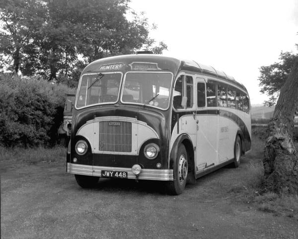 JWY448, new to Pemberton, Upton in August 1950, was acquired by Hunter, Tantobie in March 1953 and the Leyland PS1/1 Tiger with Plaxton M1 style FC35F body is seen at Hunter's Garage at Tantobie.