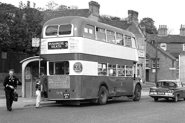 Rear view of Ipswich AEC Regent III 24, EPV24, with a Park Royal H33/28R body, new in 1956