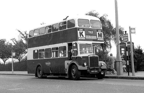 Maidstone and District DH423, RKP904, a Leyland PD2/12 with Weymann H58RD body, new in 1954, waiting to start on the long route 57 from Gravesend to Hastings.