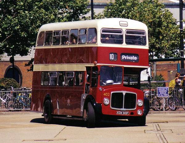 Gliding into Gosport Bus Station is ex-Southampton 402, KOW910F, an AEC Regent V East Lancs (Neepsend) H40/30R body which entered service in December 1967