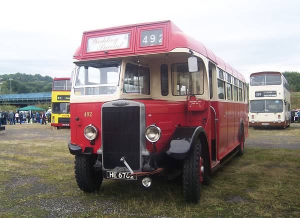Yorkshire Traction 492, HE6762, a 1935 Leyland Tiger TS7 was rebodied by Weymann in 1950. It is retained by Stagecoach Yorkshire as an event vehicle and wedding bus.
