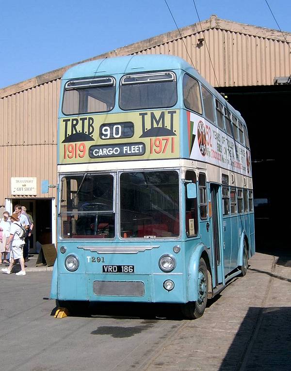 Preserved in the guise of Teesside T291, with commemorative final day lettering, VRD186, a 1961 Burlingham bodied Sunbeam F4A, was new to Reading Corporation as its 186.