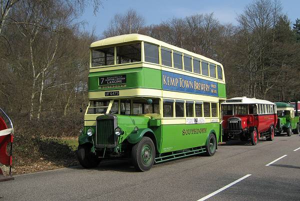 Preserved ex-Southdown 873, UF6473, a 1931 Leyland TD1 with a Leyland H24/24R body, part of the Amberley Chalk Pits collection.