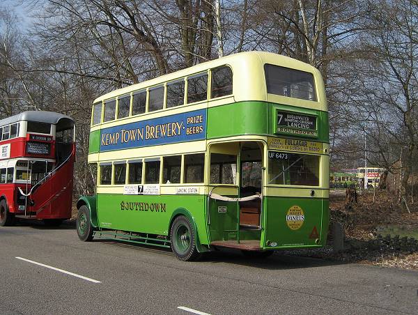 Rear view of preserved ex-Southdown 873, UF6473, a 1931 Leyland TD1 with a Leyland H24/24R body, part of the Amberley Chalk Pits collection.