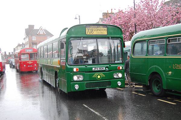 JPA190K is the former London Country RP90, AEC Reliance/Park Royal, seen here during a showery interlude at the East Grinstead Running Day.