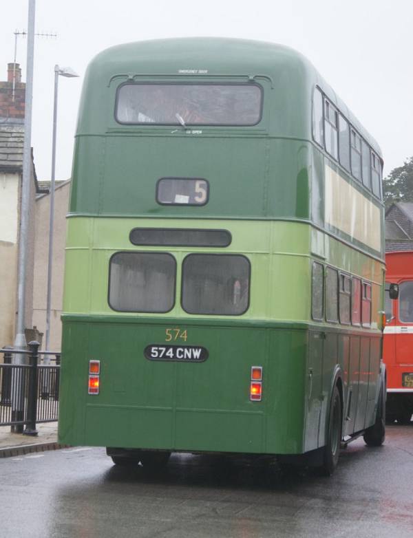 A rear view of Leeds 574, 574CNW, showing the low indicator. The well proportioned lines of the Roe body show up well in this view