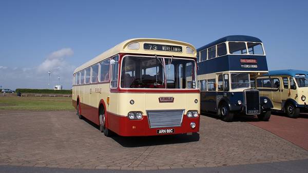Ribble adopted the dual purpose bus/semi coach concept with the advent of the Leyland Leopard. Seen in bright sunshine on Morecambe Promenade is 811, ARN811C, a 1965 Weymann bodied example.