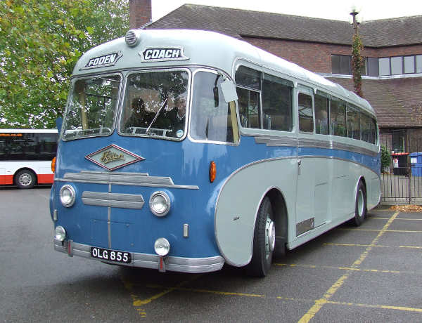 To go with John Kaye's picture of the business end of OLG855 the Foden PVRF6 with Plaxton C41C body new in September 1951 to the Foden Motor Works Band. This coach was stored after withdrawal in 1979 and eventually passed into preservation and appeared at the Warminster bus running day in October 2011.