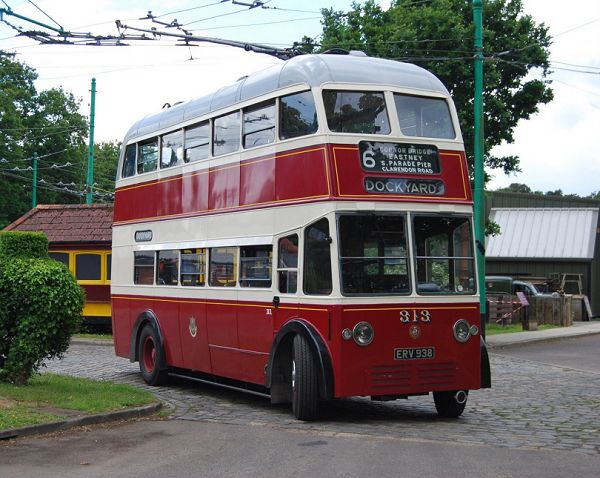 Preserved Portsmouth trolley 313, ERV938, a BUT with Burlingham H28/24R body, new in 1951 and withdrawn in 1963.