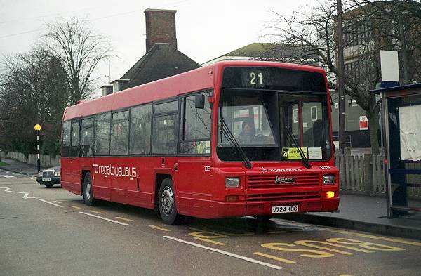 Regal Busways Leyland Lynx J724KBC at Southend Hospital on a 21 for Southend.