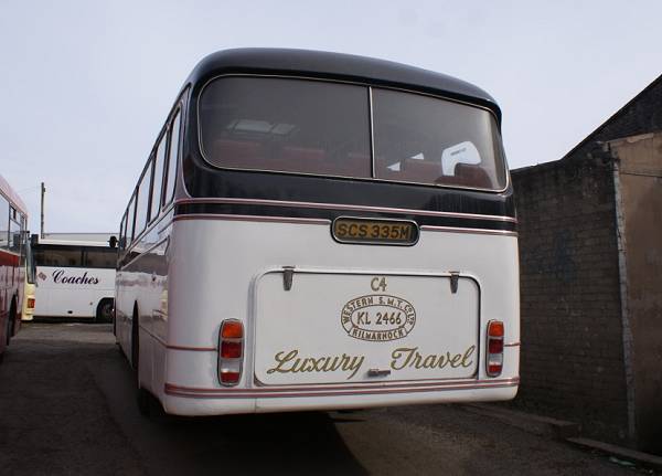 One of the all time classic bus designs was the Alexander Y type. The rear was as good looking as the front as exemplified by this shot of Western SMT 2466, SCS335M, a 1974 Leyland Leopard with Y type coach body. The famous black and white coach livery is carried.