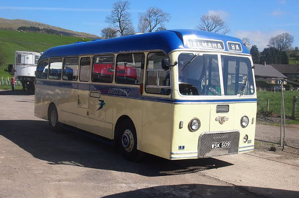 W. Alexander Falkirk PD177, WSK509 (originally OMS253), a 1960 Leyland Tiger Cub PSUC1/2 with an Alexander C41F body at Brough during the 2014 Brough & Kirkby Stephen Rally.