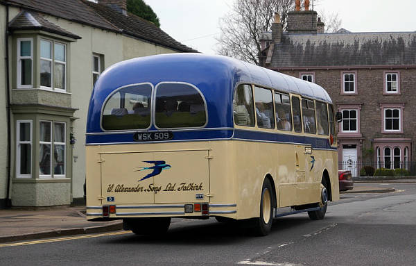 Preserved Alexander Leyland Tiger Cub PD177, WSK509, shows the neat appearance of the rear of its Alexander bodywork as it heads to Brogh through Kirkby Stephen