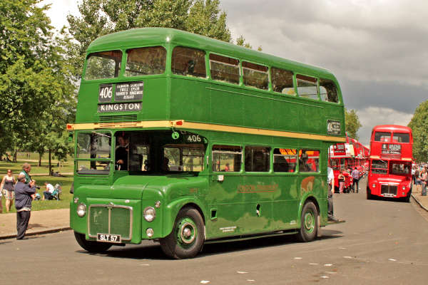 Three of the four prototype Routemasters were present at Routemaster 60 (the missing one being RMC4, the Green Line coach prototype). When RM2, SLT57, first entered service it was in green livery and was used for a short time in the Country Area. (It was the only standard RM to do be so used – later Country Area vehicles were either RMLs or Green Line coaches.) It has recently been restored to its original condition and livery as seen here.