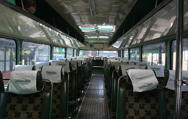Willowbrook DP49F bodied Leyland PSU3A/4RT Leopard OKO816G was new as Maidstone & District 2816 in November 1968 and was withdrawn in 1984. Initially transferred to the preserved fleet it passed to "The 2816 Society" for preservation in February 1990. An interior view towards the rear on its return to Sevenoaks Bus Station after working a journey to Borough Green Station on the occasion of a London Transport Country Area Running Day.