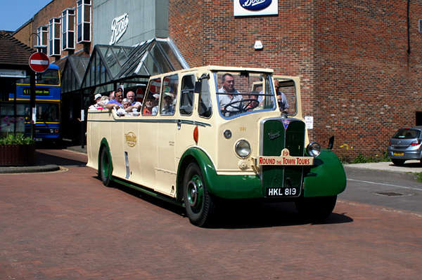 New in 1946 as Maidstone & District SO9 with a Beadle B36F body, HKL819 was converted to OB35F in May 1958 and renumbered OR1. It was renumbered again in January 1968 to 8001 and was withdrawn in 1970 and entered preservation in 1978 after sale in April 1971 to a dealer. It is seen here leaving Sevenoaks Bus Station on the occasion of a London Transport Country Area Running Day.