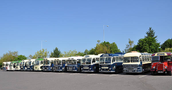 14 vehicles started day 2 of the Royal Blue run and only one would have to give up at the end of the day and not complete day 3. From right to left are EMW284, 253KTA, OTT98, OTT43, OTA632G, 837SUO, EDV502D, OTT85, 625DDV, 56GUO, 275KTA, 270KTA, OAX9F and EDV 505D, all seen awaiting their drivers and passengers.