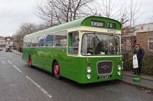 West Riding 164, LHL164F, a 1967 Leyland Panther with Roe bodywork, is preserved at Dewsbury Bus Museum and looks immaculate, just as it did in the previous photo of it in 1995. It is seen working a free shuttle service between the museum and Dewsbury Bus Station during its Autumn Open Day.