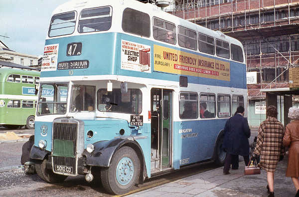 Brighton Corporation 10, 5010CD, a Leyland PD2/37 with a Weymann H37/27F body dating from 1961.