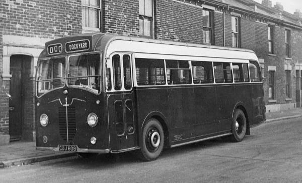 From November 1950 to January 1951, Portsmouth evaluated GUJ608, a Sentinel STC4/Sentinel B40F which was on loan from Sentinel (Shrewsbury) Ltd in a blue and cream livery.