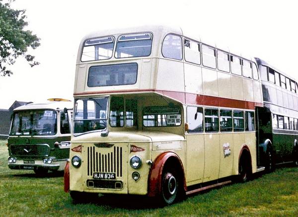 Former Southend 276, HJN836, a Massey bodied Leyland Titan PD2/20 owned by Fosters of Dinninngton in June 1970 at Pontefract Racecourse?. The location might be wrong, the sign in the window of HJN & the coach at the side of it read Miners Special Bus & the Prince of Wales Colliery was opposite Pontefract Park & Racecourse